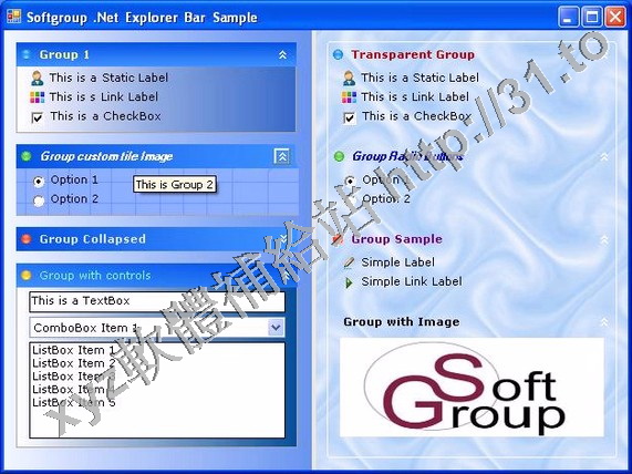 Softgroup .Net ListBar Control is a small, fast and